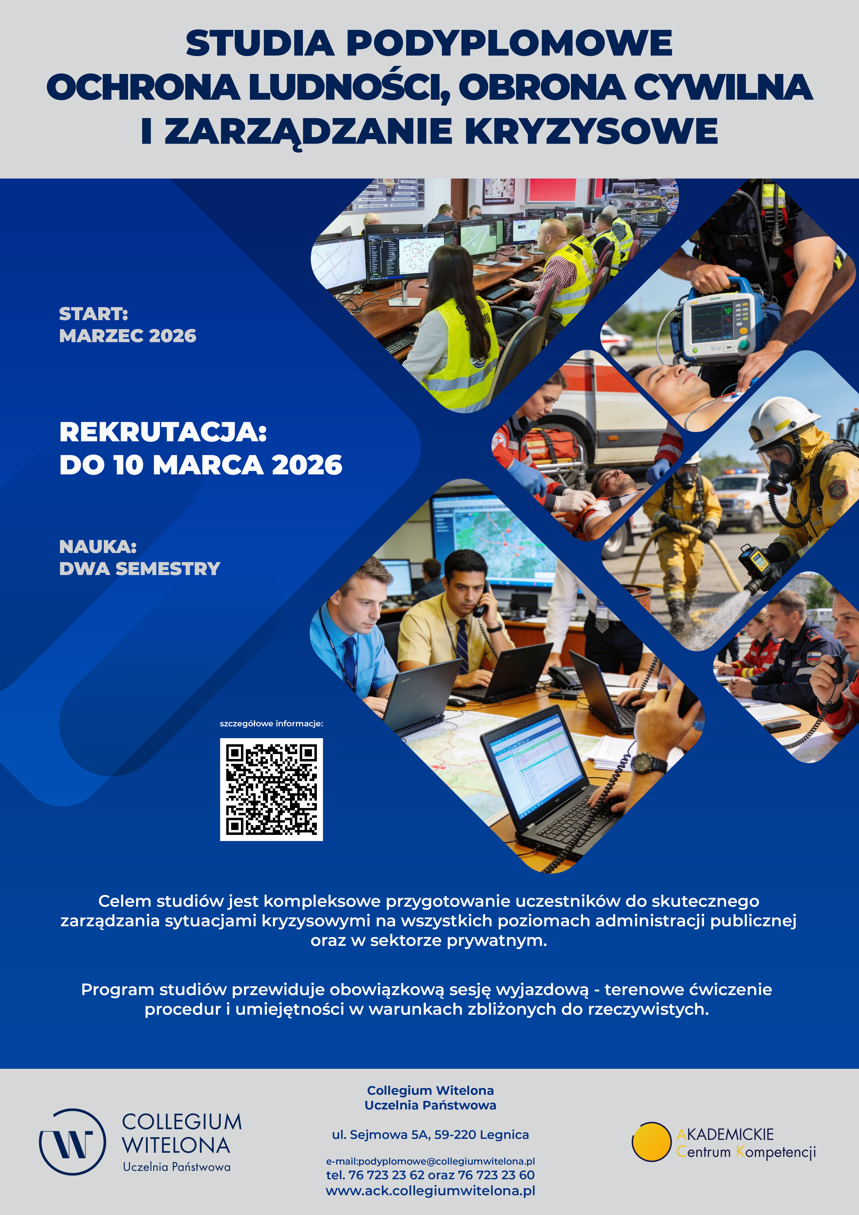 Collegium Witelona Uczelnia Państwowa zaprasza na dwusemestralne STUDIA PODYPLOMOWE OCHRONA LUDNOŚCI, OBRONA CYWILNA I ZARZĄDZANIE KRYZYSOWE.